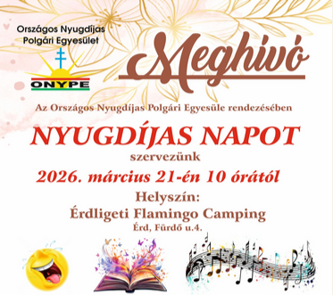 Az Országos Nyugdíjas Polgári Egyesület szeretettel várja Érd és a környező települések nyugdíjasait egy vidám, közösségi programra, a Nyugdíjas Napra, amelyet 2026. március 21-én, szombaton 10 órától rendeznek meg az Érdligeti Flamingo Campingben (Érd, Fürdő utca 4.).