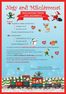 Idén is útra kel a nagy érdi Mikulásvonat! December 6-án várja utasait 15:03-kor az Érdliget, 15:07-kor Érd felső vasútállomáson! November 20. szerda éjféltől nyílik a regisztrációs felület.