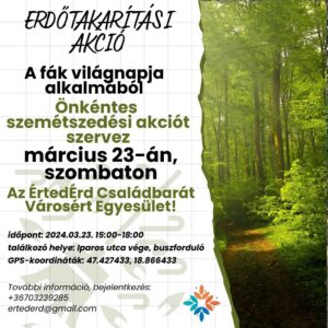 Az ÉRteD CSALÁDBARÁT VÁROSÉRT EGYESÜLET március 23-án, szombaton megmozdulást szervez az érdi erdőkért.